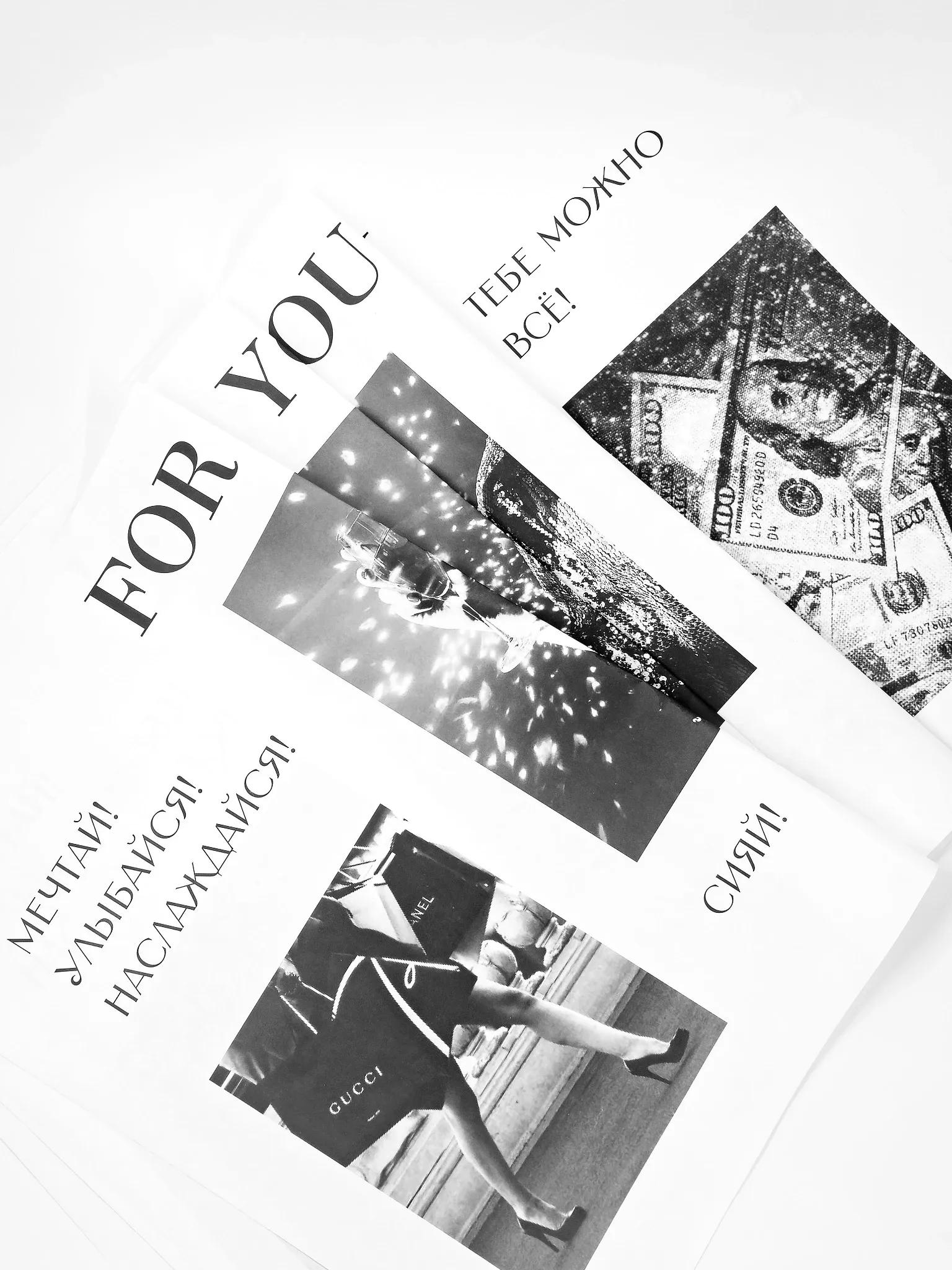 Дизайн сочетает трендовый монохром, визуалы роскошной жизни и мотивирующие посылы, что делает продукт особенно востребованным в магазинах подарков, шоурумах, концептуальных бутиках, а также среди брендов, ориентированных на молодую и активную аудиторию.