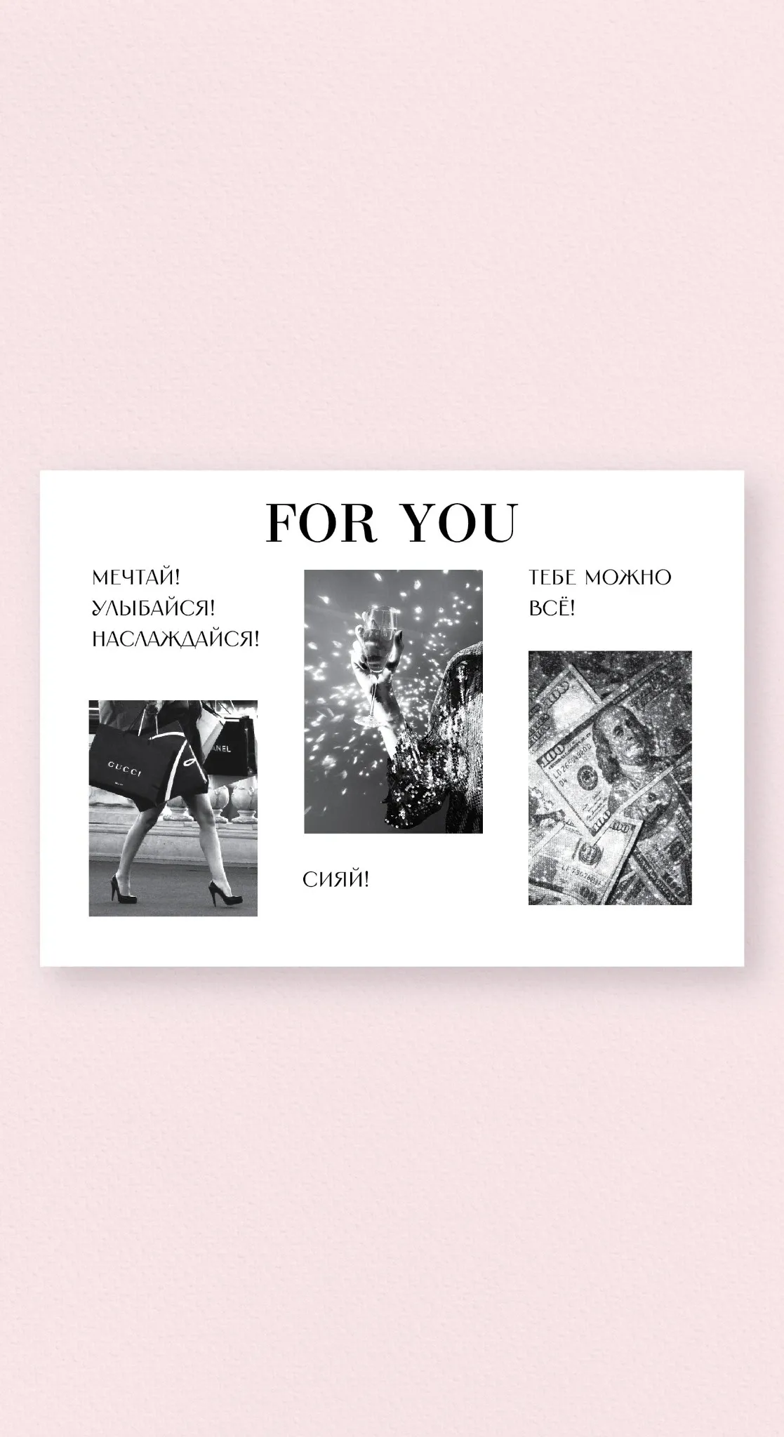Современная оберточная бумага с мотивационным дизайном и элементами lifestyle-эстетики - идеальное решение для создания стильной и эмоционально заряженной упаковки. Надписи «Мечтай! Улыбайся! Наслаждайся! Сияй!» формируют позитивное восприятие подарка и усиливают его ценность для конечного покупателя.